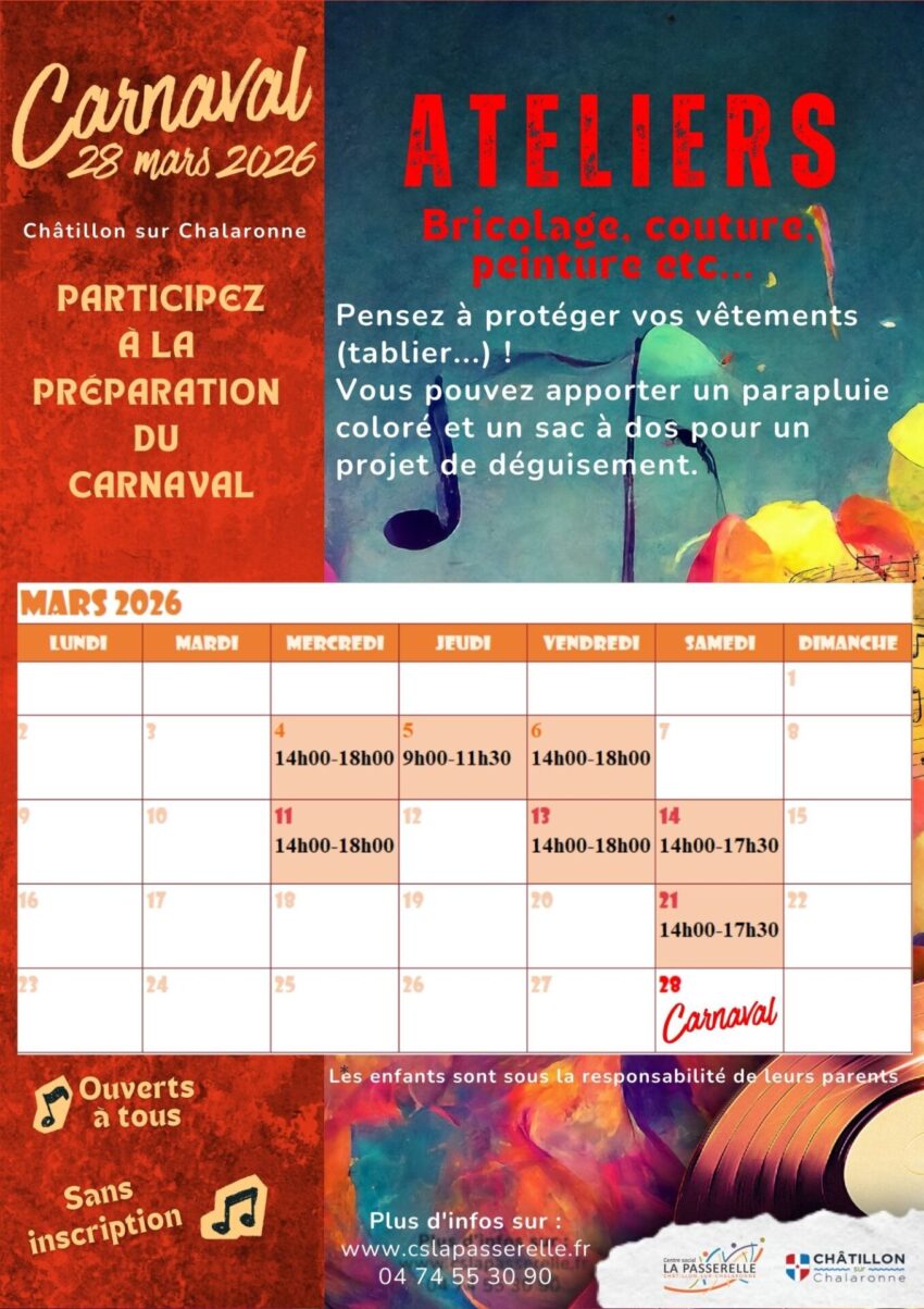 La Passerelle vous invite à venir participer à sa préparation lors des divers ateliers : peinture, bricolage, couture… pas besoin d’être un « pro », toutes les bonnes volontés sont les bienvenues !